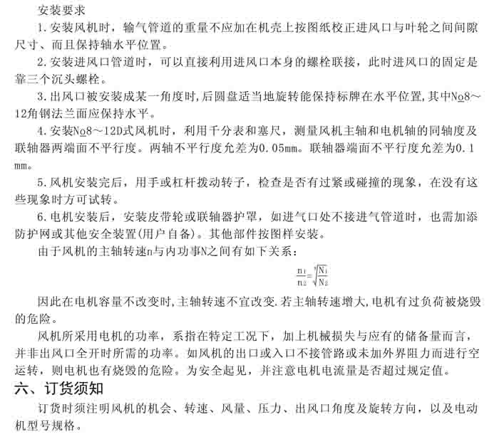 · 一、風(fēng)機(jī)選用參考、安裝維護(hù)使用說明、常見故障分析、訂貨注意事項(xiàng)