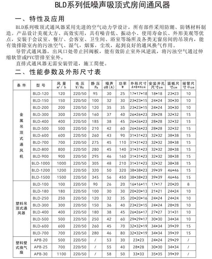二、BLD、APB 低噪聲吸頂式房間通風(fēng)器及百葉窗式換氣扇