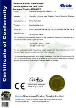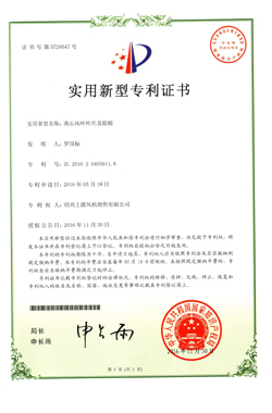 離心風(fēng)機專利證書 |